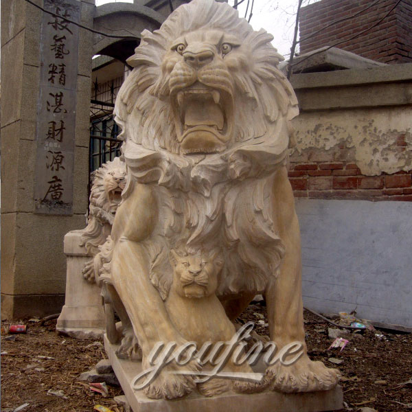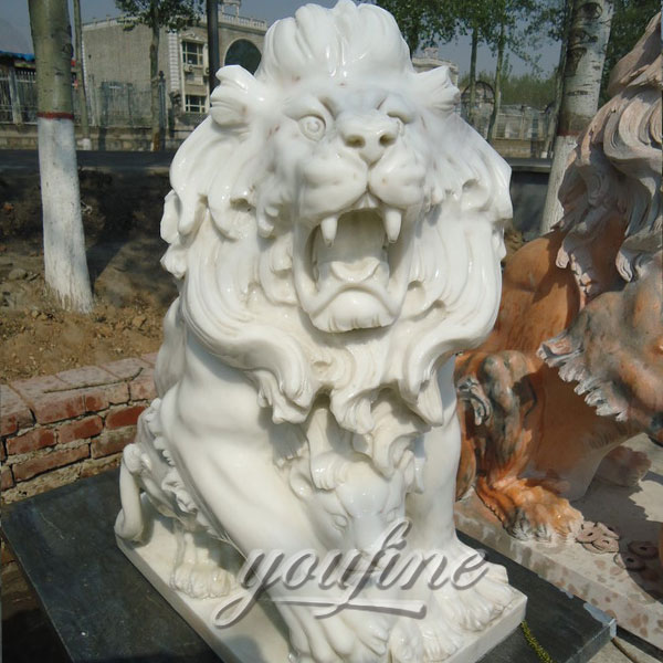 - antique marble carved lion on ball 7″ life with farher foo dog